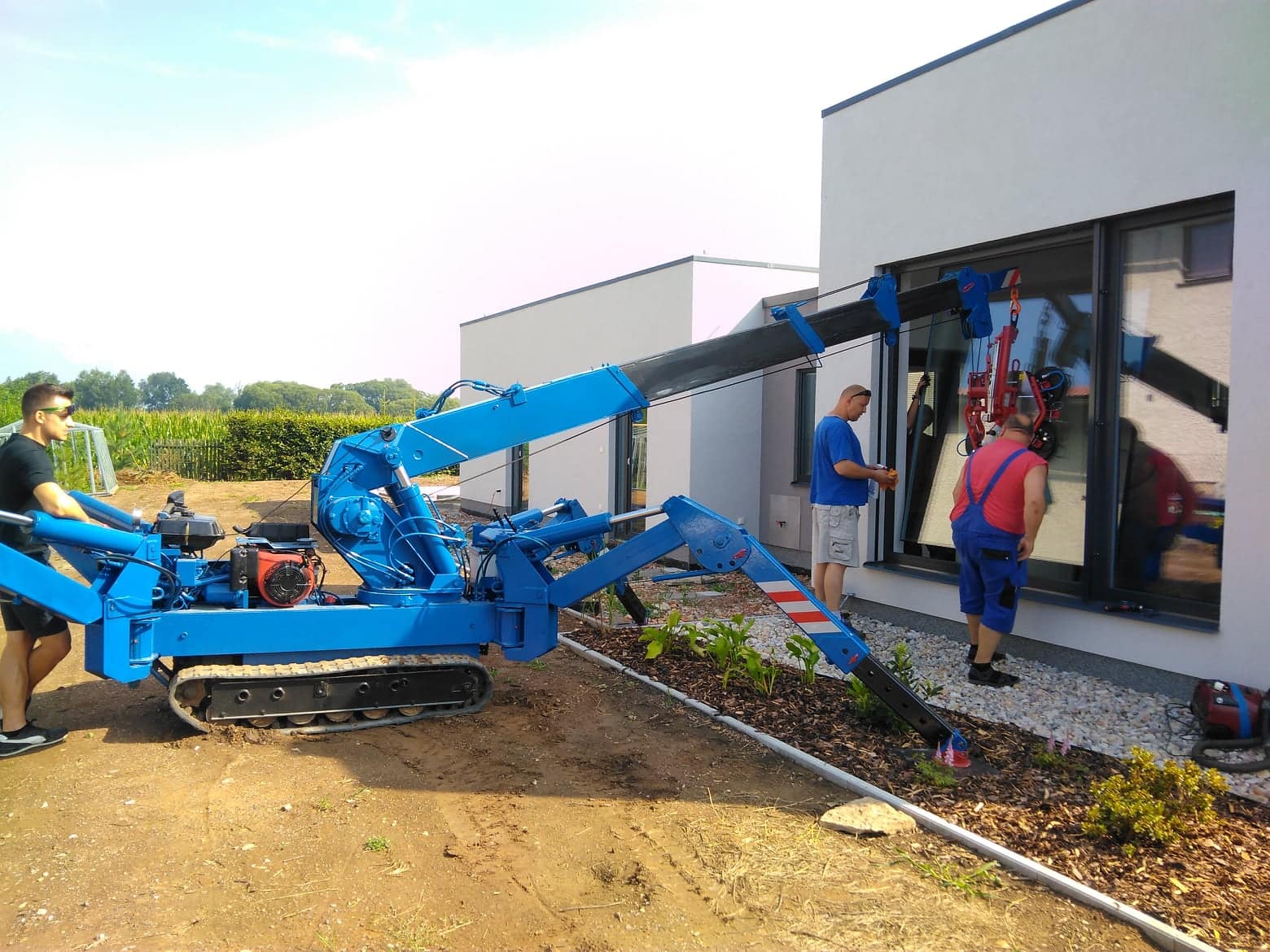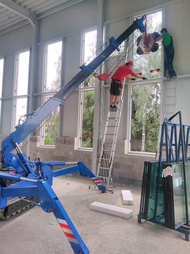Provádíme zasklívací práce s minijeřábem pomocí vakuového manipulátoru značky Kappel - model DSKZ2-12V. Lze využít při stavbě domu, zvedání těžkých břemen, úpravě terénu, stěhování strojů, osazování ČOV a bazénů,...